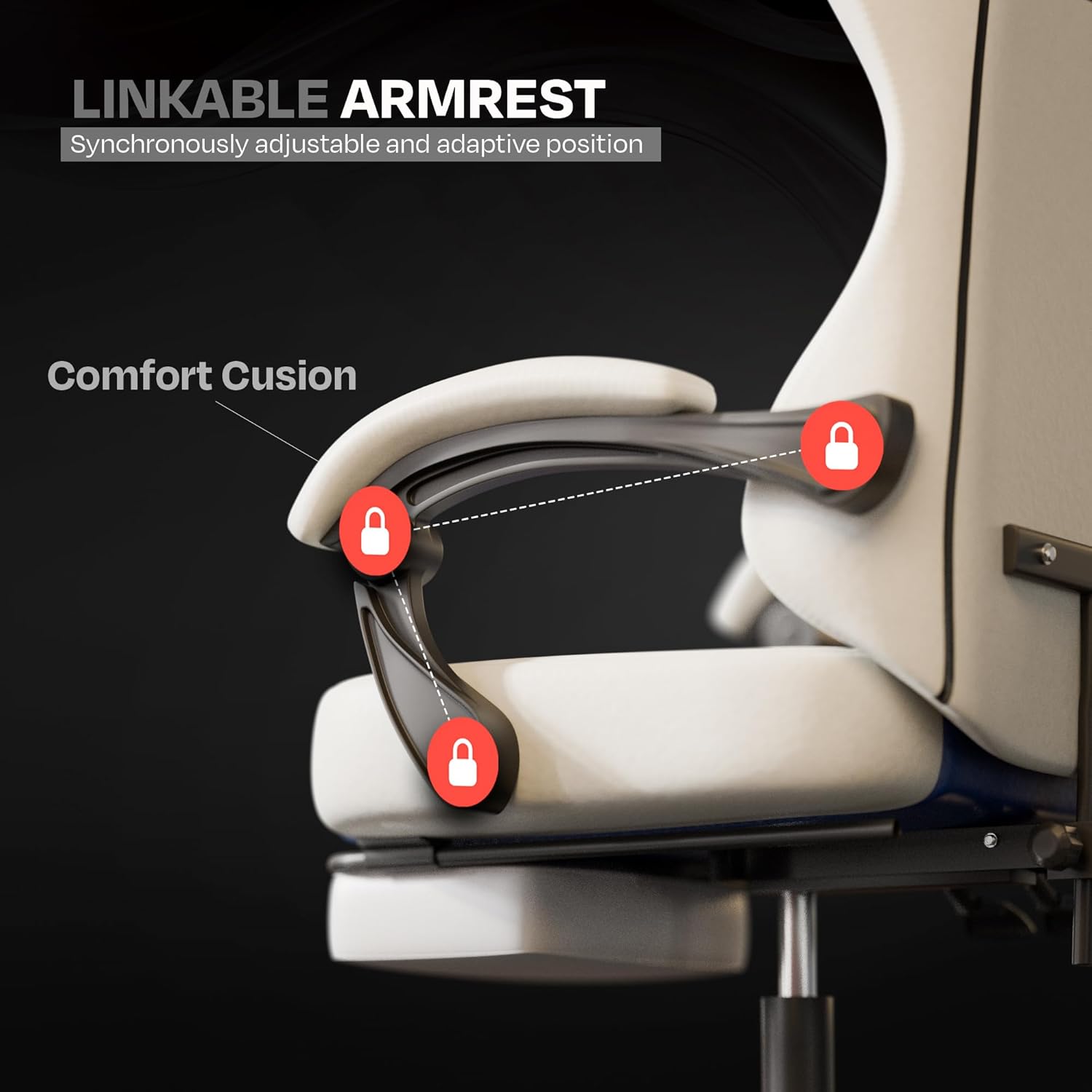 • 𝗛𝗲𝗶𝗴𝗵𝘁 𝗔𝗱𝗷𝘂𝘀𝘁𝗮𝗯𝗹𝗲 & 𝗟𝗶𝗻𝗸𝗮𝗴𝗲 𝗔𝗿𝗺𝗿𝗲𝘀𝘁: Effortlessly customize height and enjoy smooth linkage armrests, making this chair for home use and office the perfect ergonomic chair to reduce strain during extended gaming or working hours.