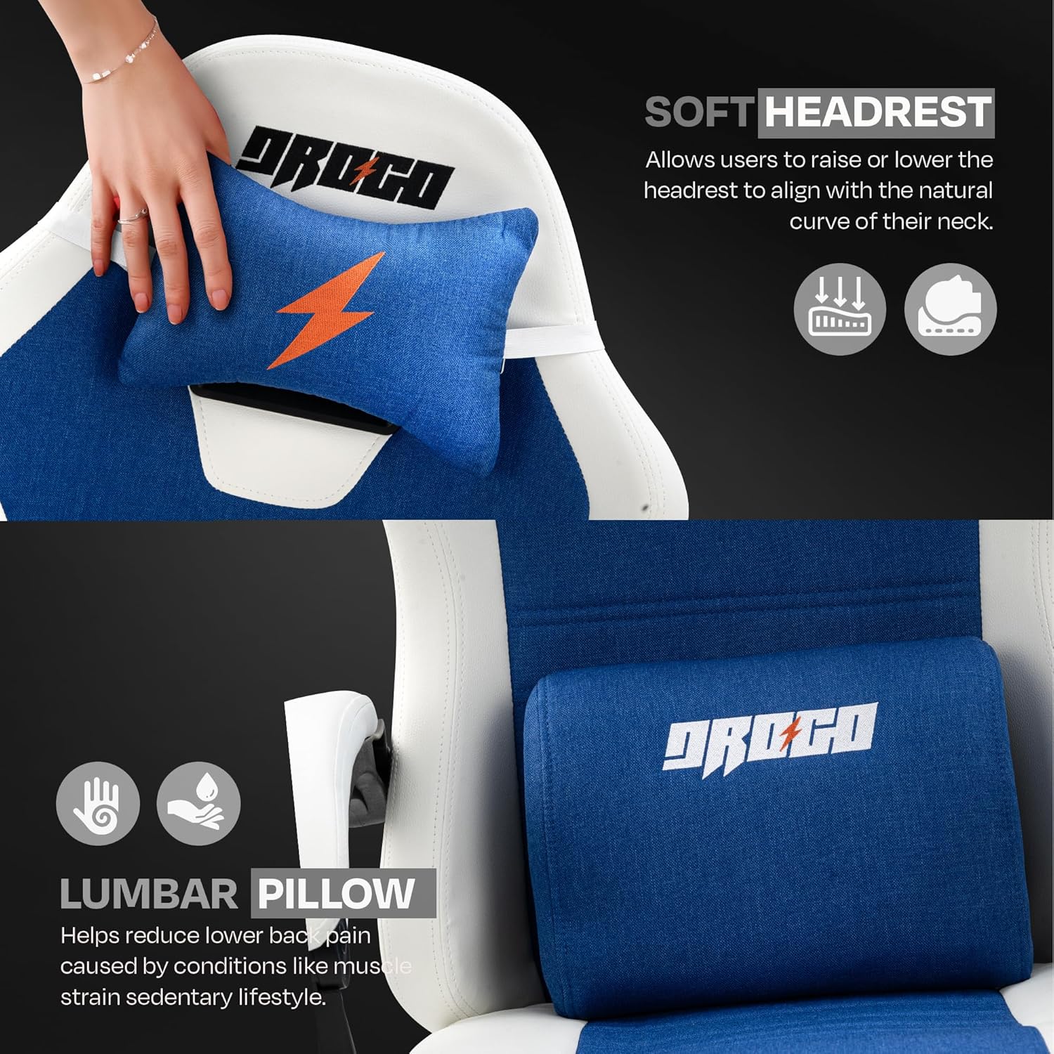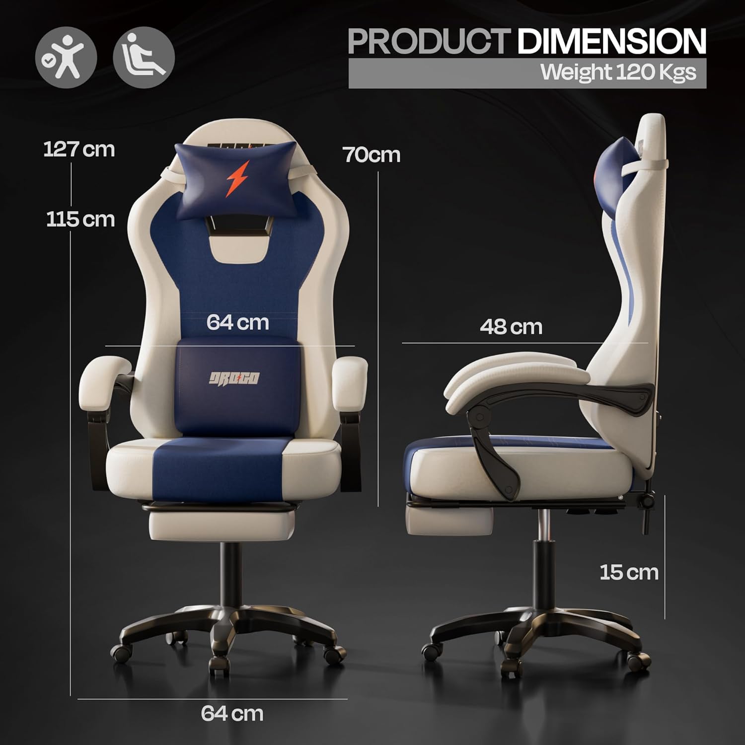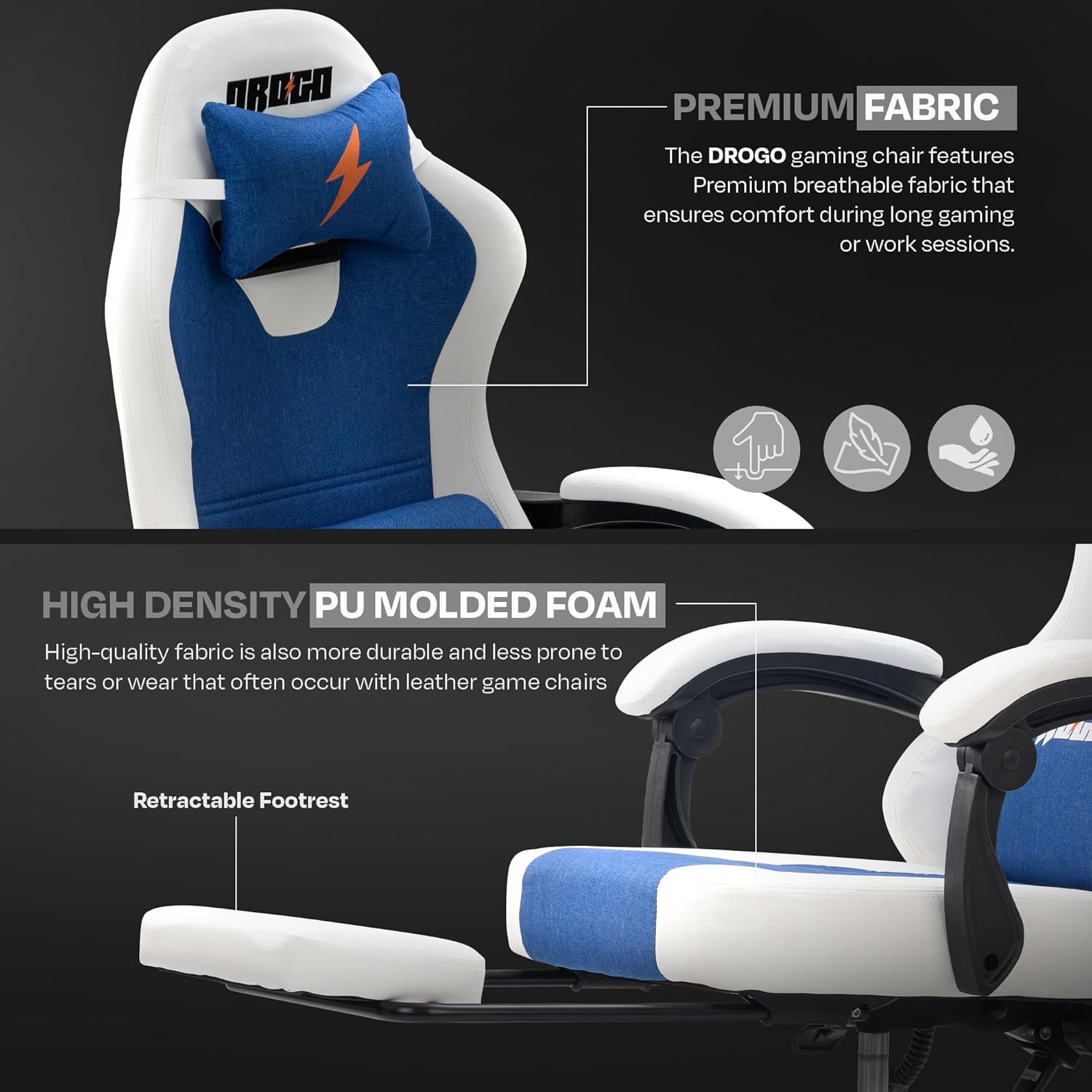 DROGO Aura Ergonomic Gaming Chair with Premium PU Leather Fabric, Linkage Armrest, Adjustable Neck & Lumbar Pillow | Computer Chair for Study | Office Chairs for Work from Home with Recline (White)